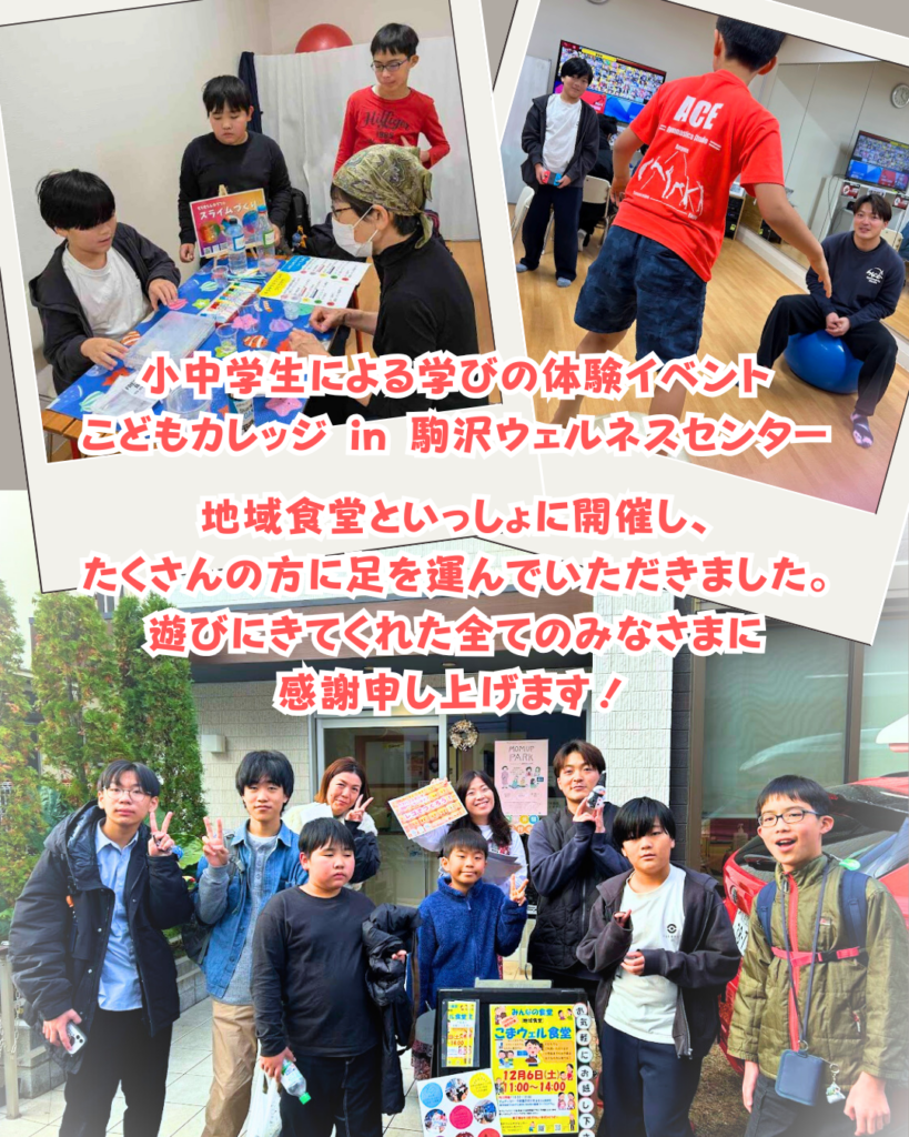 【開催報告】12月6日(土)こどもカレッジin 駒沢ウェルネスセンター