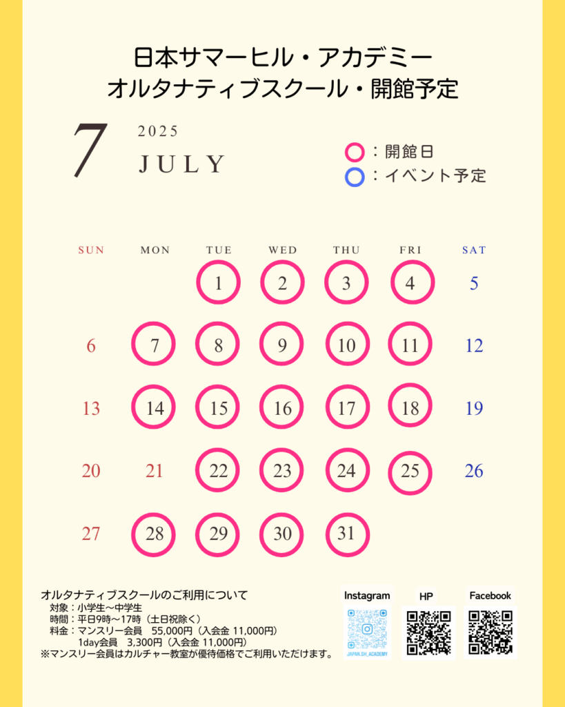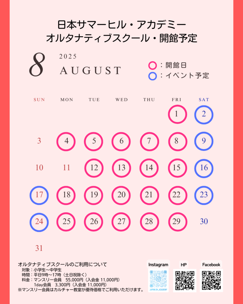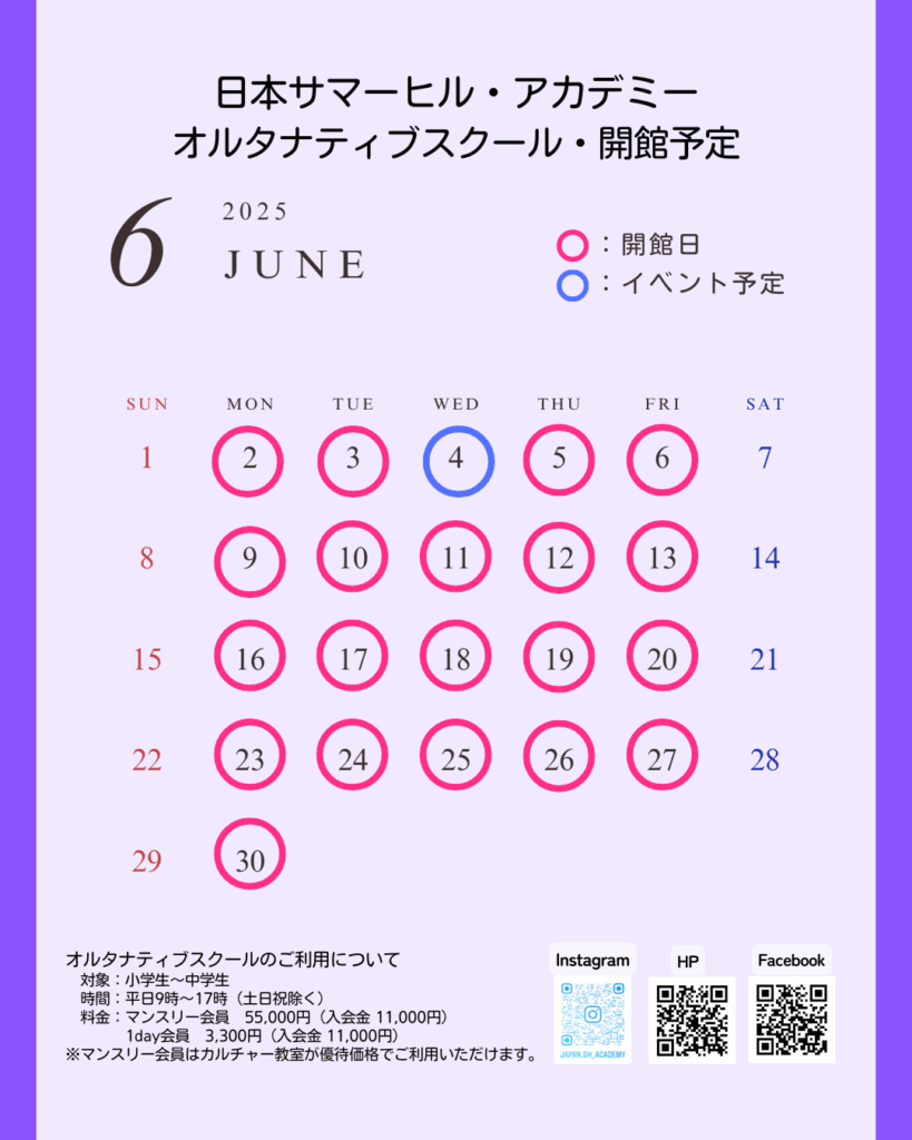 日本サマーヒル・アカデミーオルタナティブスクール12月の開館予定です。