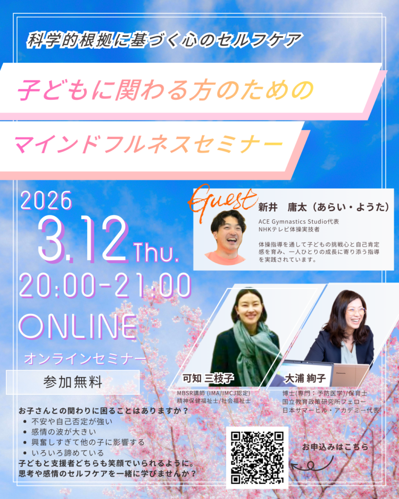 【申込受付中】2026年3月12日(木)子どもに関わる方のためのマインドフルネスセミナー