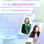 2026年1月2日 / 最終更新日 : 2026年1月9日 jpn-SA EVENT 【申込受付中】子どもに関わる方のためのマインドフルネスセミナー 子どもに関わるすべての方へ。マインドフルネスセミナー(参加無 […]