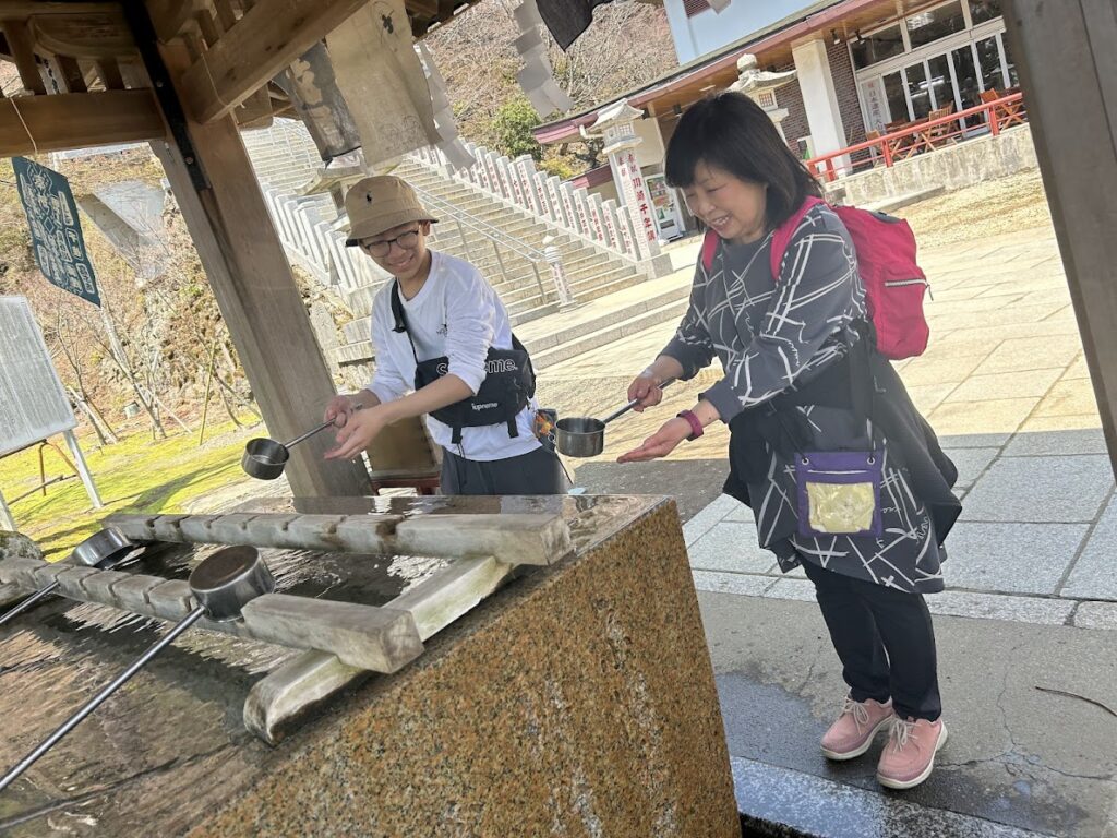 阿夫利神社ではお作法を教えてもらってお参りして、龍神さんのお水をもらって。