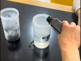 この実験、冷水と熱湯にインクを落としてみるもので、
