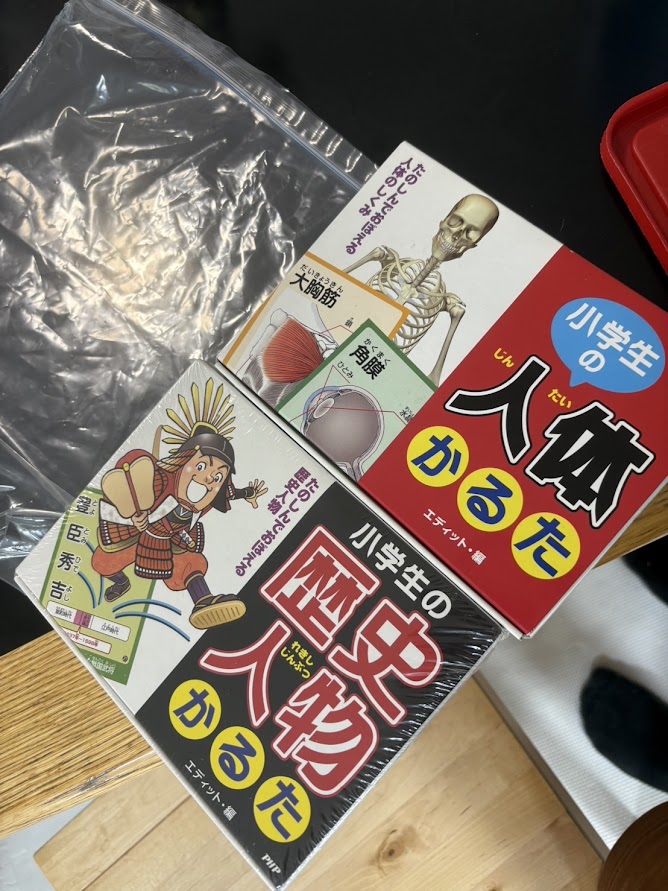 「小学生の人体かるた」「小学生の歴史人物かるた」2つご寄付いただきました。