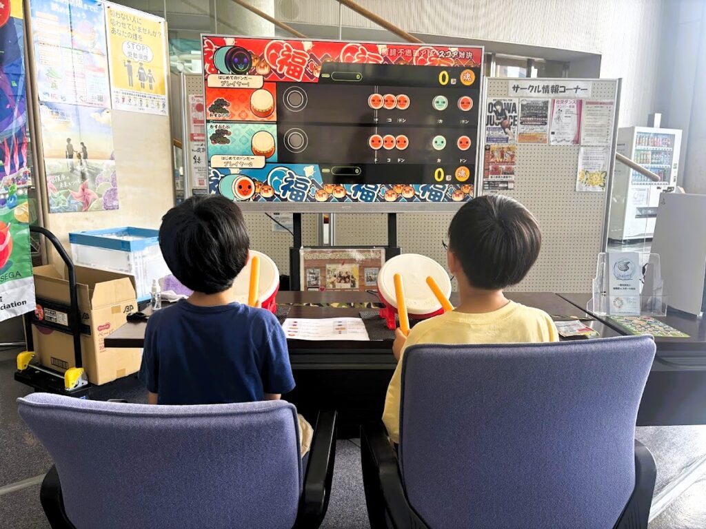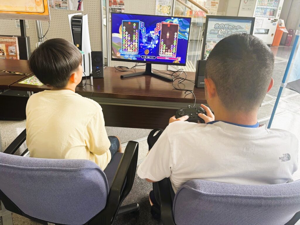 北の丘センターへ到着するや否や、eスポーツ(ぷよぷよと太鼓の達人)コーナーへ。