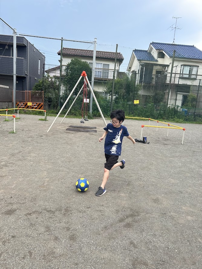 サッカー少年小5くんが強くて、まさに体を張ったゴール死守でした。