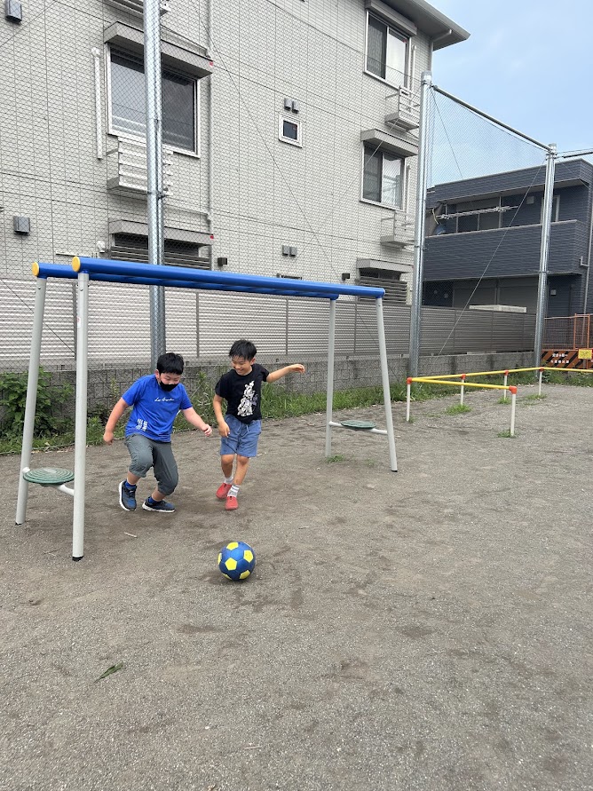以前は、外遊びは、大人が遊びの提案をしないと上手に遊べなかった子たちでしたが、最近は、アクティブな生徒が増えたこともプラスに働き、積極的に外で遊ぶ日が増え、自分たちで自由に遊んで、汗だく&びしょぬれで帰ってくるようになりました。