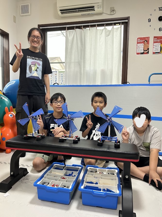 この日は、レゴを用いて、力と運動、再生可能エネルギー、エネルギーの捕捉と蓄積、消費といった理科のテーマについて学びましょう!ということで、レゴエデュケーションの教材のなかの、サイエンス&テクノロジーのキットをそれぞれ使用し、風車を組み立てました。
