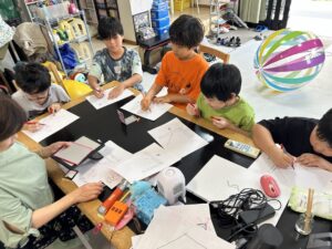 急にGボール技の練習が始まったり、自分たちで自由にアスレチックを組み立てて遊びだすことも。大縄もありますね。