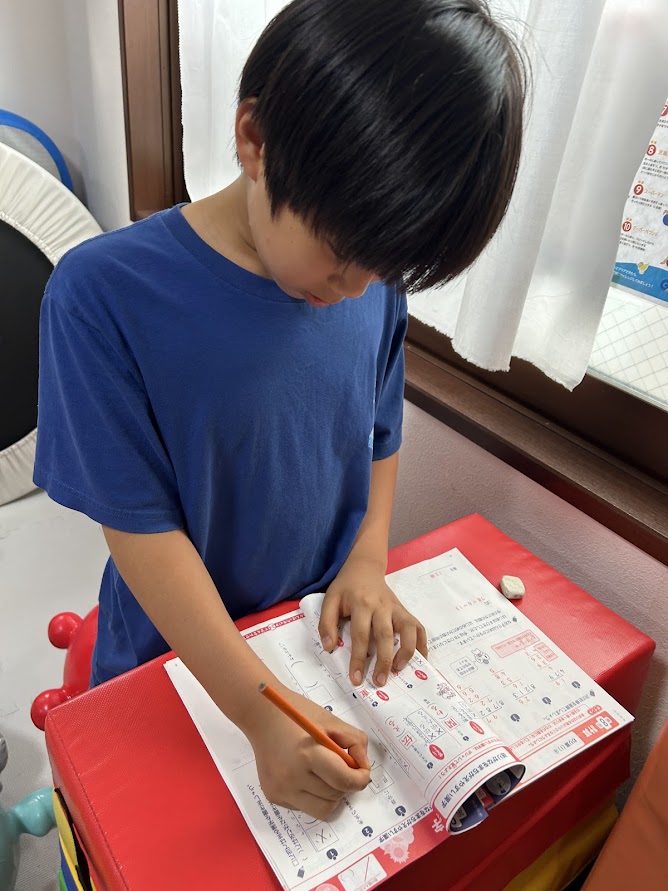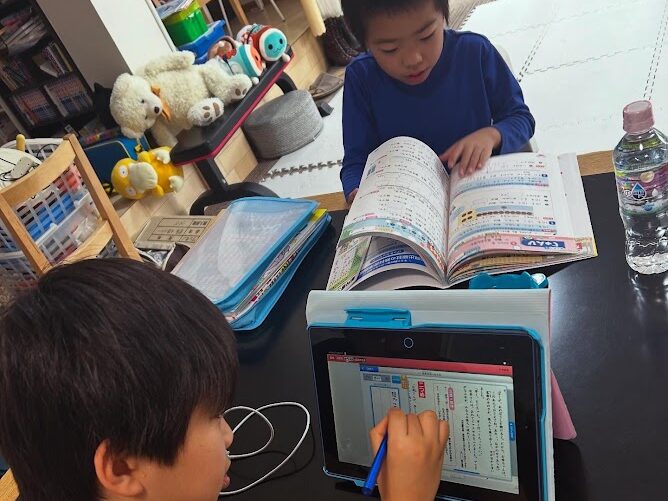 現在は多くの生徒が進研ゼミの教材を使い、基礎学習に取り組んでいます。ドリルや演習問題を用いて1〜2時間集中し、通常学校で行う内容を短時間で効率よく学んでいます。