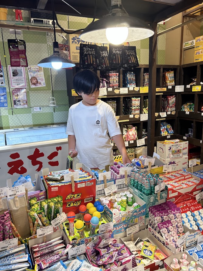 駄菓子屋さんで、真剣な銭勘定が繰り広げられました。