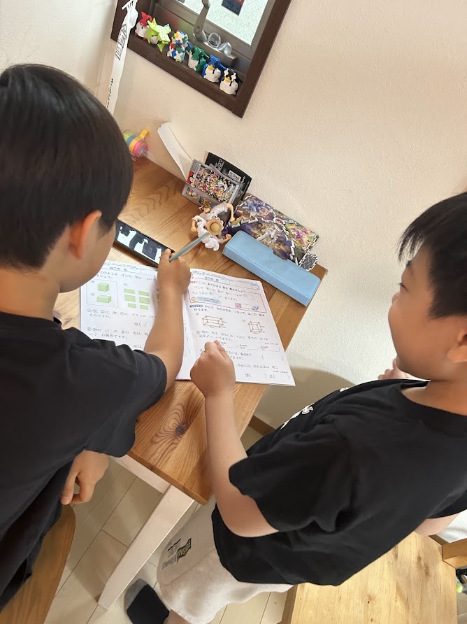 しんどいものは、毎日やるものだと習慣づけてしまうことで、苦手な・嫌いななどネガティブな感情がある場合、それが薄まりやすい。自宅で自主的に学習することは、自分の中でしっかり目標があったりしないと難しいものですが、皆が学習し始めたら自分もがんばろうという気になる、そんな自然な学習の様子が日々室内では見られます。