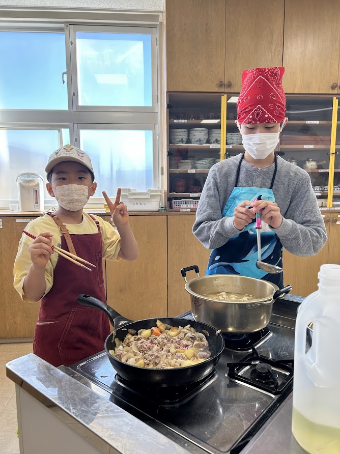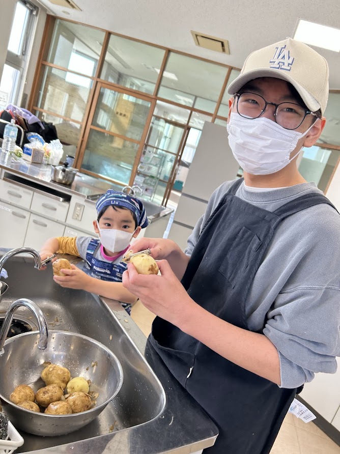 メニューは、カレー・シチュー・スノーボールクッキー・じゃがりこ!講師はさっちー先生&あっきーくん。