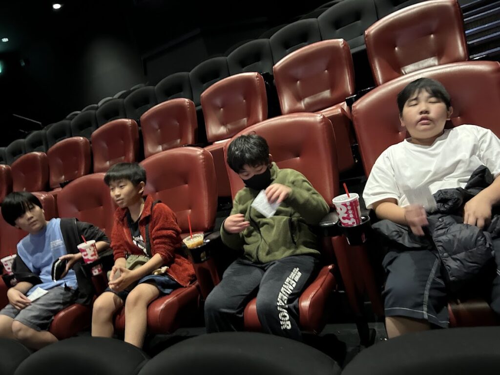 朝から登校組と夕方からの合流組に分かれてスタート。朝組はサイエンス実験を受講後、映画館へ行き、みんなで横並びのプレミアムシートで「ズートピア2」を鑑賞しました。特別な一日らしい、贅沢で楽しい時間になったようです。