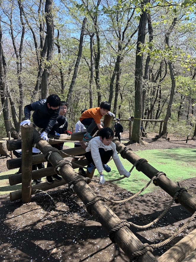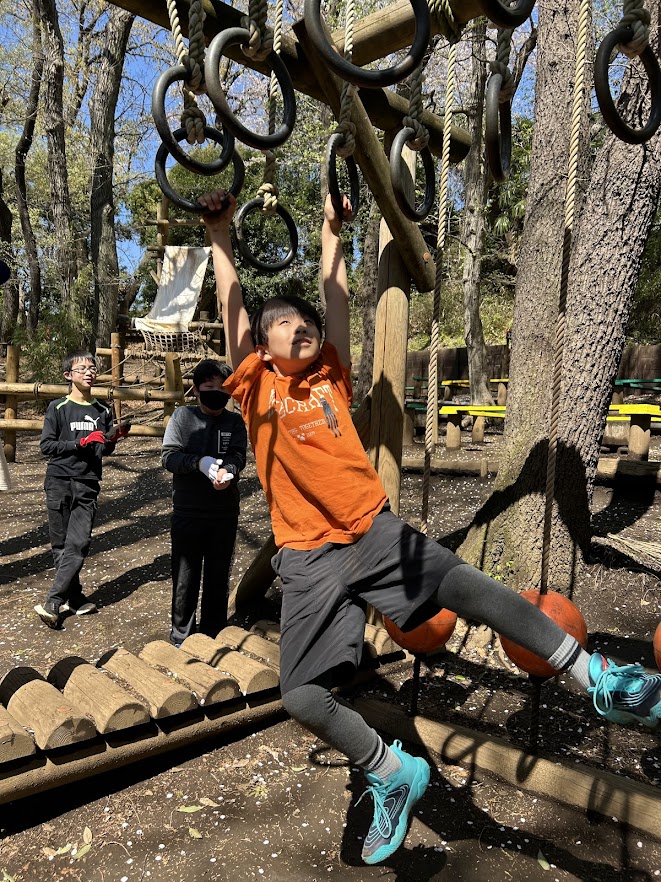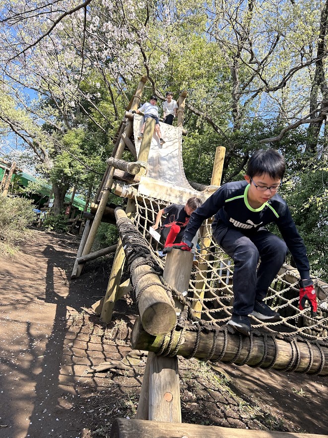 この遠足は、小学生が発案し、企画書を作成し、メンバーを集めて実現したもの。日本サマーヒル・アカデミーの「自分たちでつくる課外活動」という起業家教育の一環です。当日は「難しそうだからやめておこう」となりがちな場面でも、「友達と一緒だから」「みんながいるから」という空気の中で一歩踏み出す姿がたくさん見られました。動ける子はどんどん先へ進み、難しい遊具にも果敢にチャレンジし、少し苦手な子も必死についていこうとしながら仲間の応援を受けて挑戦していました。